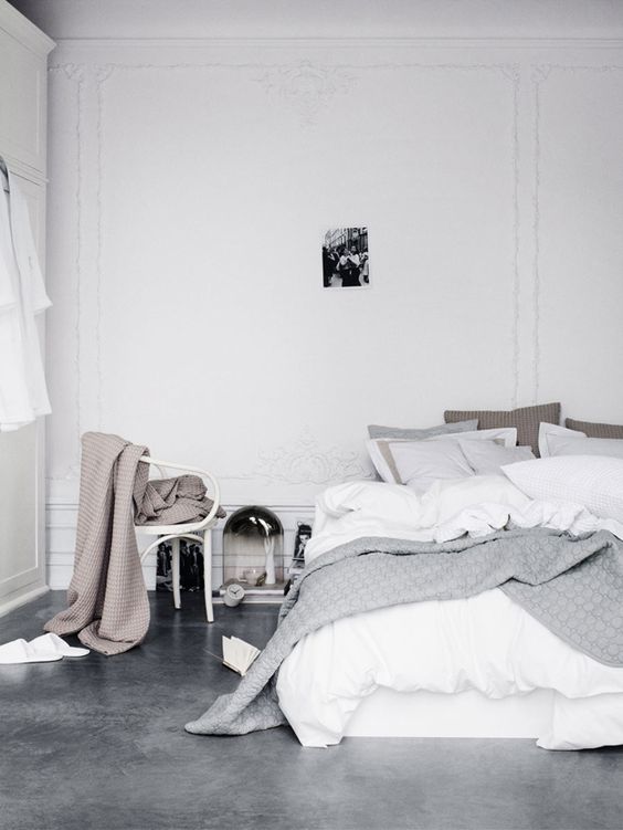 V spálni vytvoria leštené betónové podlahy čistý, mierne industriálny vzhľad, ktorý zjemníte pridaním textílií. Prikrývky, vankúše a koberčeky priestor zútulnia. Ak sa ale rozhodnete pre použitie betónovej podlahy v spálni, zvážte investíciu do podlahového kúrenia. Ráno tak začnete bez nepríjemného pocitu chladných nôh.